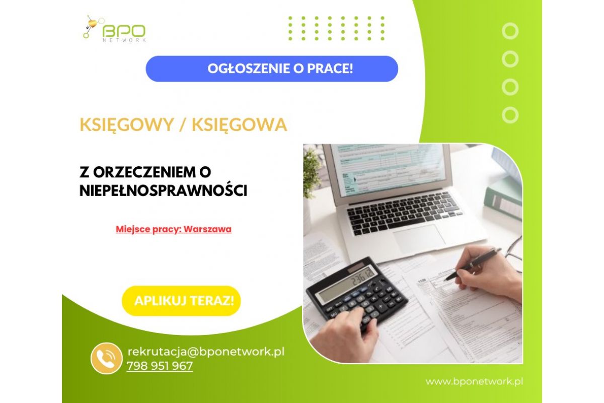 Księgowy/Księgowa z orzeczeniem o niepełnosprawności - praca stacjonarna w Warszawie